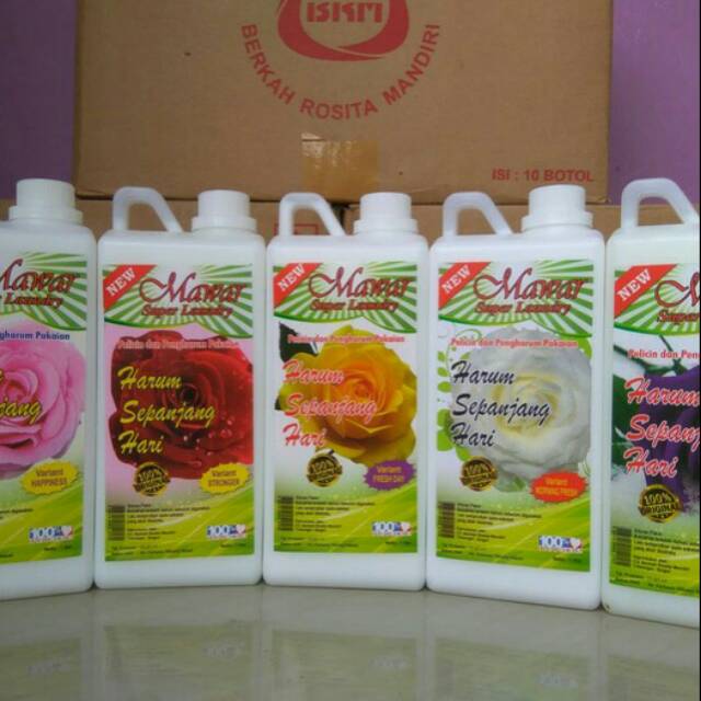 Berbeda dari produk yang diusung brand di atas Mawar Super Laundry justru menyajikan pewangi berbentuk cairan untuk semprotan baju. Pewangi pakaian jenis ini bisanya diperuntukkan buatmu yang nggak pengen pakai parfum lagi setelahnya karena wanginya yang tahan lama. Khususnya di kota-kota besar seperti Jakarta Surabaya Bandung Semarang Yogyakarta dan lainnya.