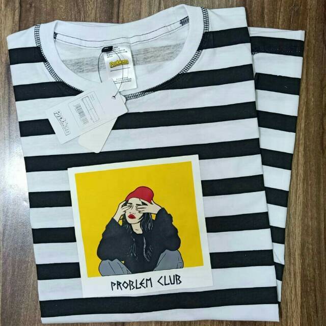 Promo Pakaian Kaos Distro Problem Baju Salur Stripe Belang Putih List Hitam Baju Lengan Pendek Shopee Indonesia