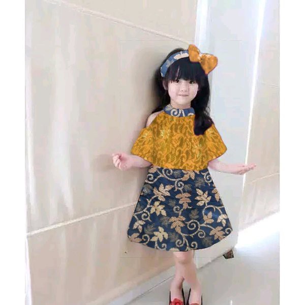 Gl Dress Febiola Kid Batik Baju Anak Perempuan Cewe Babol Bahu Pundak Bolong Brukat Pesta Ulang Shopee Indonesia