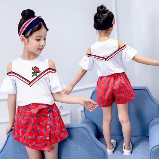 0920ii Gl Setelan Feather Baju Anak Perempuan Cewe 2in1 Atasan Bahu Pundak Bolong Robek Babol Rok Shopee Indonesia