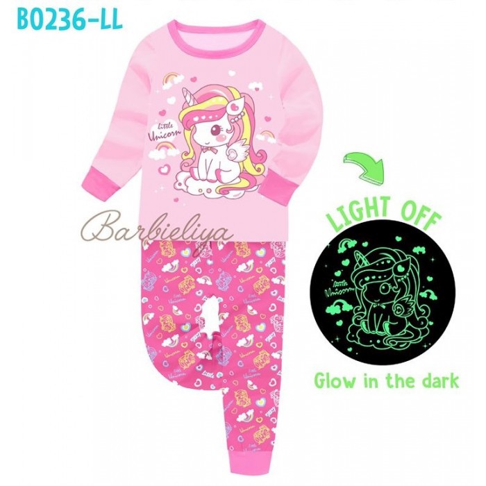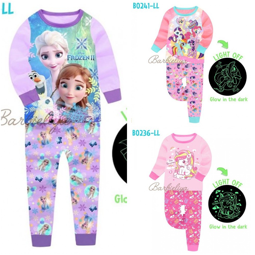 Barbieliya Pyjamas Sleepwear Glow In The Dark Long Sleeves Kids Girl Baju Tidur Lengan Seluar Panjang Budak Shopee Malaysia