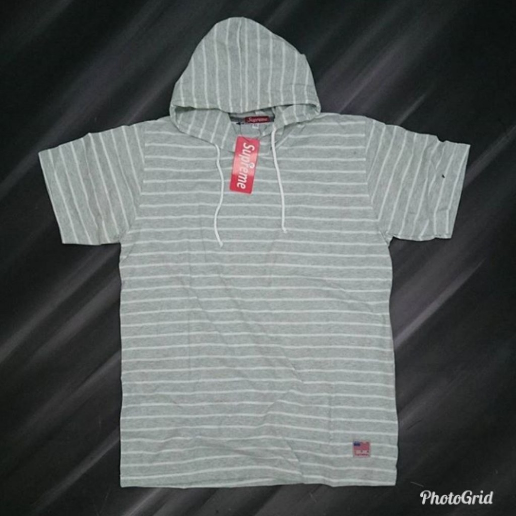 Kaos Jumper Hoodie Pria Lengan Pendek List Hitam Putih Merah Premium Lazada Indonesia