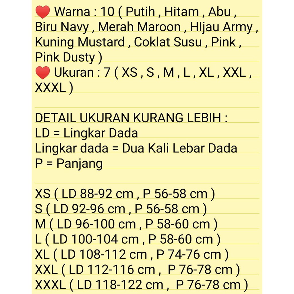 Ukuran baju xl ld berapa. Gunakan Penggaris Ambil bajupakaiandress kepunyaan sista yang biasa nyaman sista pakai kemudian letakan bajupakaiandress di lantai atau di meja pertama untuk ukur dulu dari bawah ketiak turun 5 cm untuk menentukan titik acuan menghitung lingkar dada di lantai atau meja setelah mendapatkan titik acuan menghitung lingkar dada barulah kita ukur lurus dari sisi kiri sampai sis kanan. Gunakan Penggaris Ambil bajupakaiandress kepunyaan sista yang biasa nyaman sista pakai kemudian letakan bajupakaiandress di lantai atau di meja pertama untuk ukur dulu dari bawah ketiak turun 5 cm untuk menentukan titik acuan menghitung lingkar dada di lantai atau meja setelah mendapatkan titik acuan menghitung lingkar dada barulah kita ukur lurus dari sisi kiri sampai sis kanan. Satu pertanyaan yang paling sering ditanyakan adalah berapa panjang gamis Haifa untuk ukuran SML atau XL.